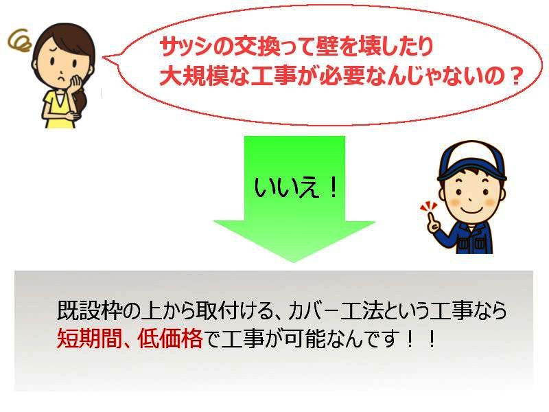 当社では「片引き窓→引違い窓」、「上げ下げ窓」→「上げ下げ窓」にカバー工法で交換できます。