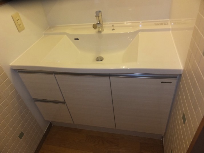 東京都小金井市 T様邸 洗面台(リクシル ビエラW900)へ交換及び床CFの張替え
